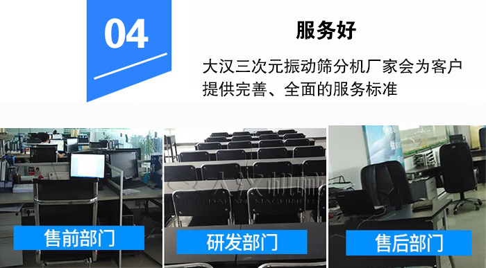 大漢三次元振動篩分機廠家會為客戶提供完善、全面的服務(wù)標(biāo)準(zhǔn),包括售前、售中、售后,為客戶提供選型指導(dǎo),并負(fù)責(zé)后期的上門安裝、調(diào)試指導(dǎo)、維修保養(yǎng)、維修、保養(yǎng)等工作,廠家支持上門安裝、調(diào)試指導(dǎo)、維修保養(yǎng)等服務(wù)。