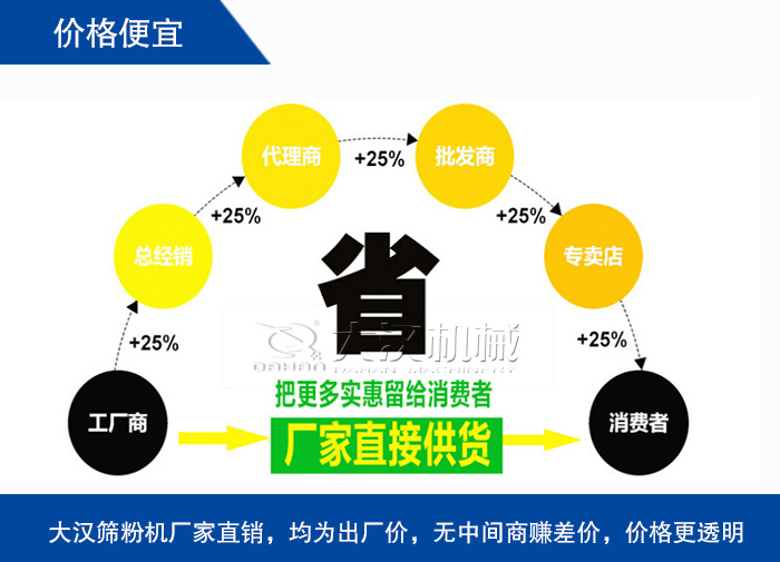 大漢篩粉機(jī)廠家直銷,均為出廠價(jià),無(wú)中間商賺差價(jià),價(jià)格更透明,而且我們公司位于河南省新鄉(xiāng)市,設(shè)備的生產(chǎn)成本和運(yùn)輸成本普遍較低,所以可以節(jié)省大量的資金浪費(fèi),篩粉機(jī)價(jià)格更便宜。