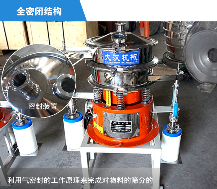 避免3D打印機(jī)金屬粉容易被氧化,而且人類如果不慎吸入,會對人體造成極大的傷害,所以這就要求,我們的氣體寶華振動篩需要有嚴(yán)格的密封裝置,氣體保護(hù)振動篩正是由于這種利用氣密封的工作原理來完成對物料的篩分的,非常符合3D打印機(jī)金屬粉篩分的要求。