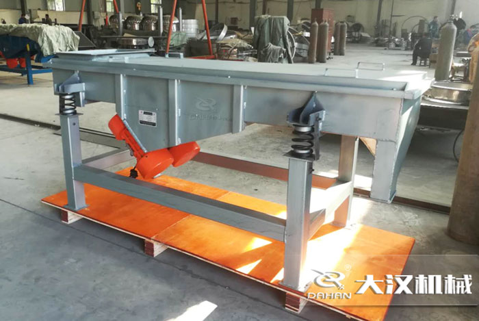 DZSF系列直線震動篩為雙振動電機驅(qū)動。當兩臺振動電機做同步、反向旋轉(zhuǎn)時,其偏心塊所產(chǎn)生的激振力在平行于電機軸線的方向相互抵消,在垂直于電機軸的方向疊為一合力,因此篩機的運動軌跡為一直線。兩電機軸相對篩面在垂直方向有一傾角,在激振力和物料自重力的合力作用下,物料在篩面上被拋起跳躍或向前作直線運動,從而達到對物料進行篩選和分級的目的。適用于粒度在0.074—5mm,含水量小于7%,無粘性的各種干式粉狀或顆粒狀物料的篩分。給料粒度不大于10mm。